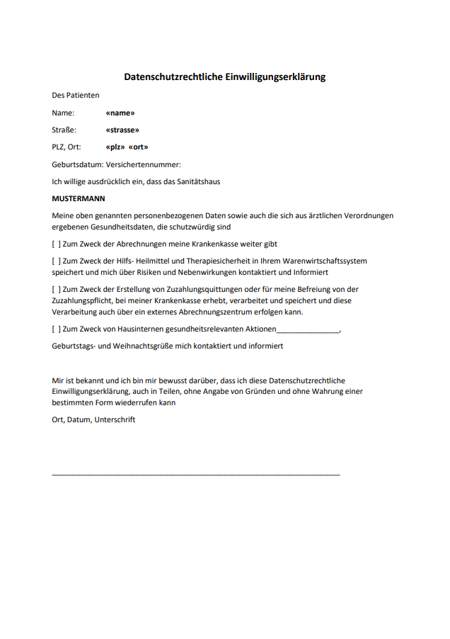 Beispiele Datenschutzrechtliche Einwilligungserklärung: