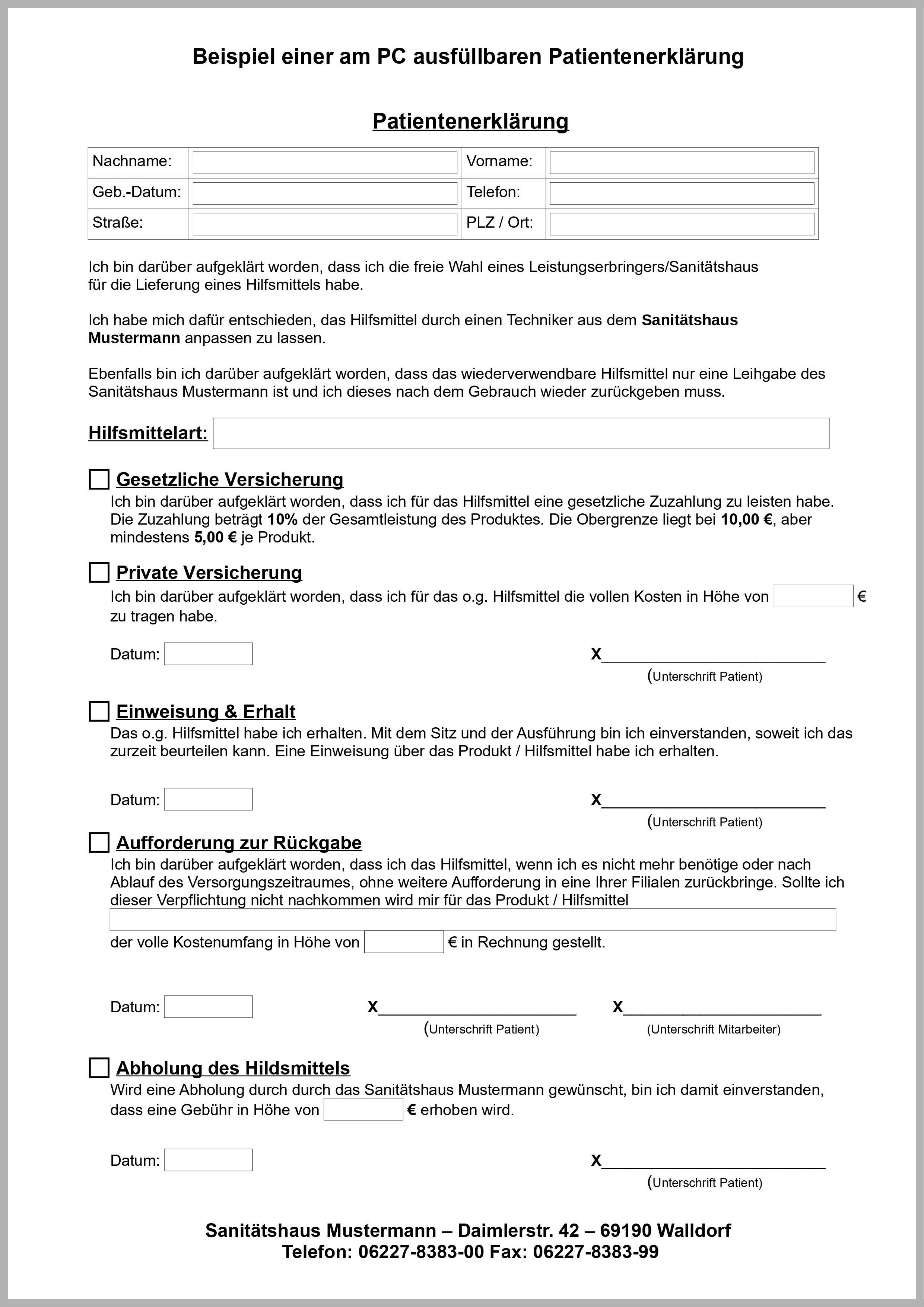 Beispiele Patientenerklärung mit PDF Formularfelder: