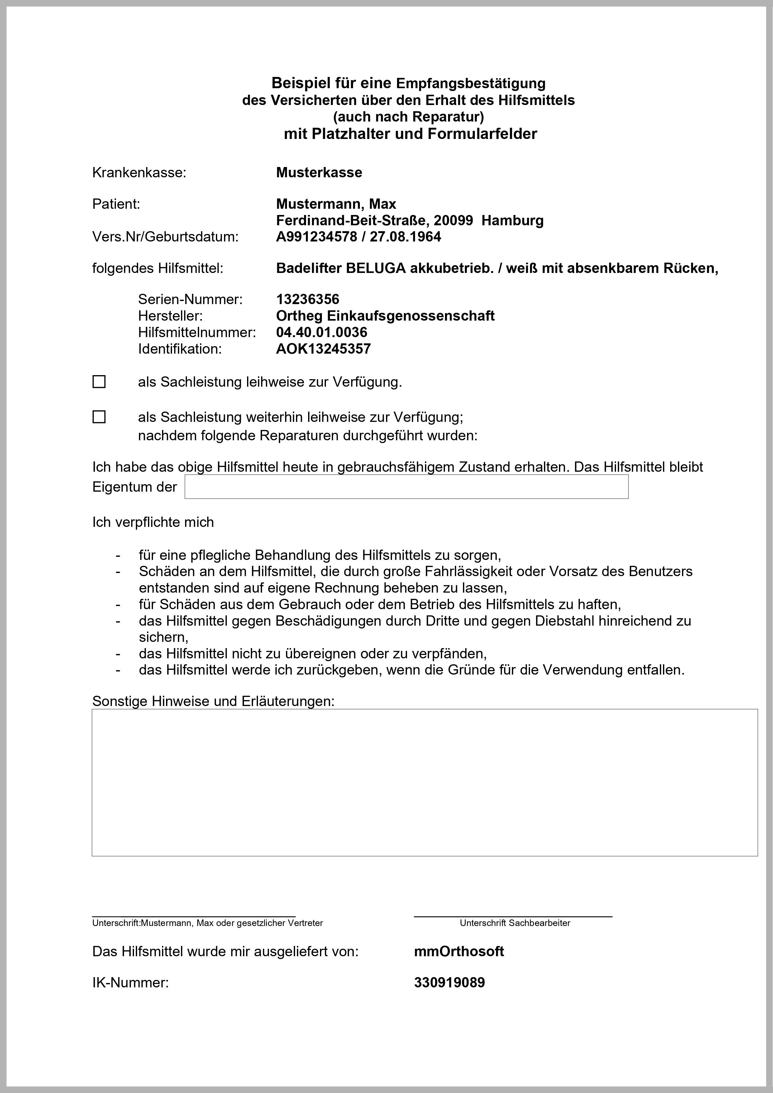 Beispiele Reha Empfangsbestätigung mit PDF Formularfelder: