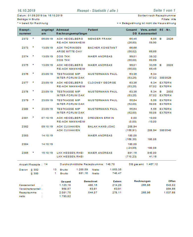 Pro Zeitraum (von Datum bis Datum) werden aus den Dateien KV, Rezept und Rechnung folgende Zeilen erstellt (pro Artikel eine Zeile):