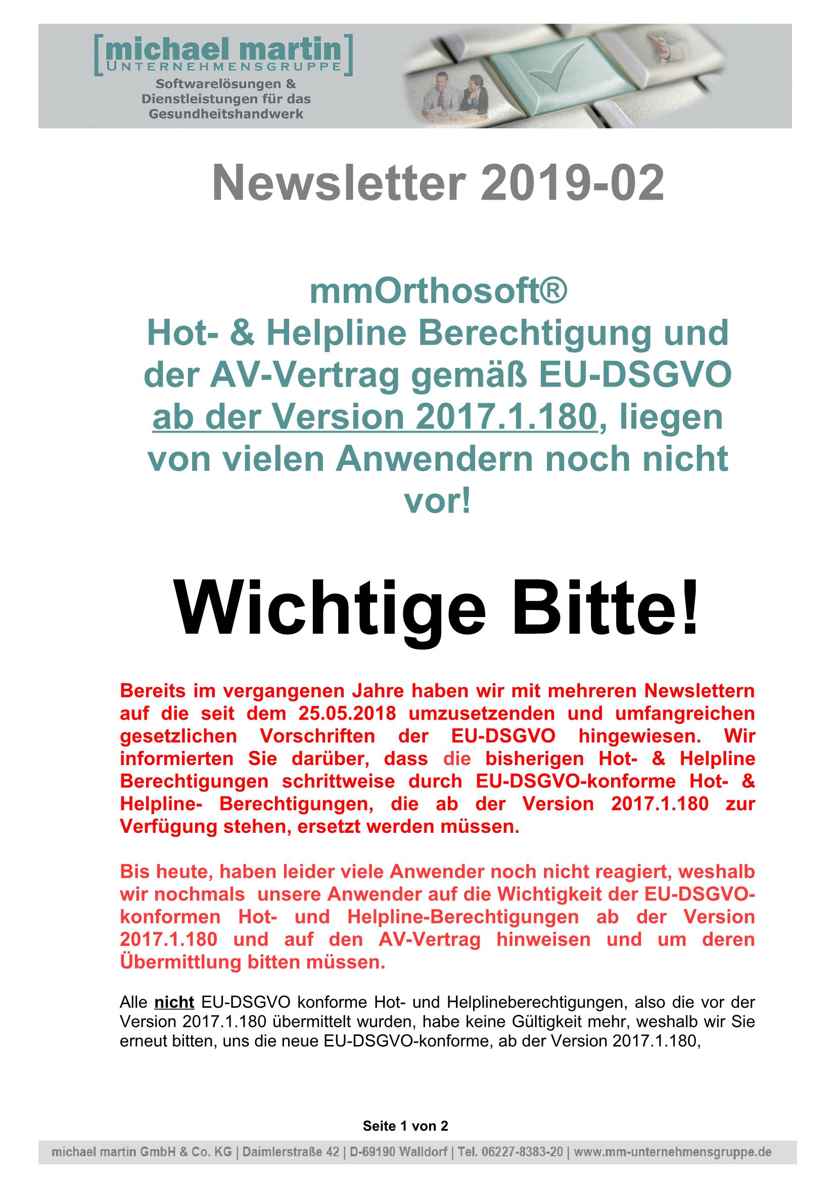 17.01.2019 NEWSLETTER "Hot- Helpline DSGVO konform"