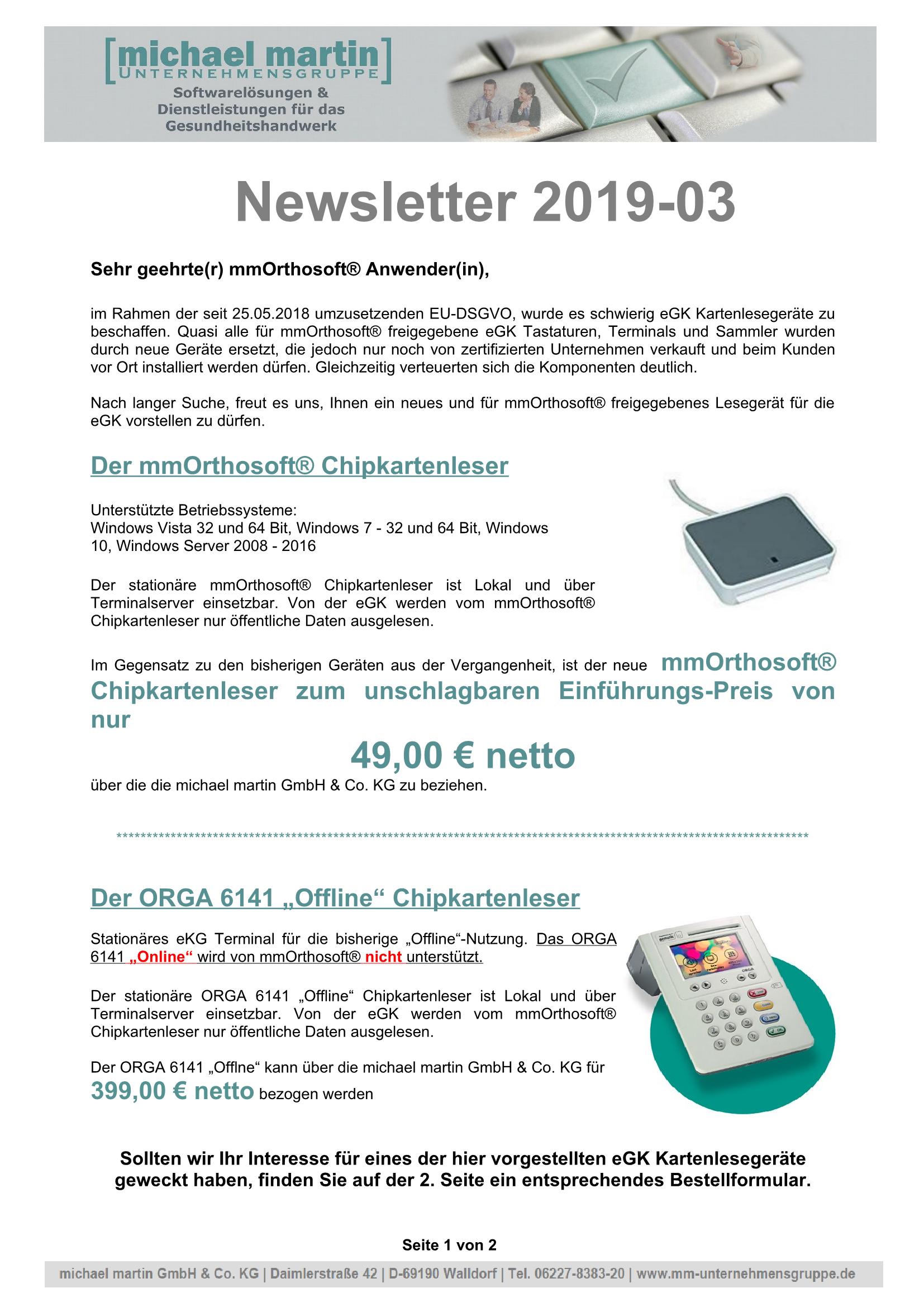 08.02.2019 NEWSLETTER "Neues Kartenlesegerät"
