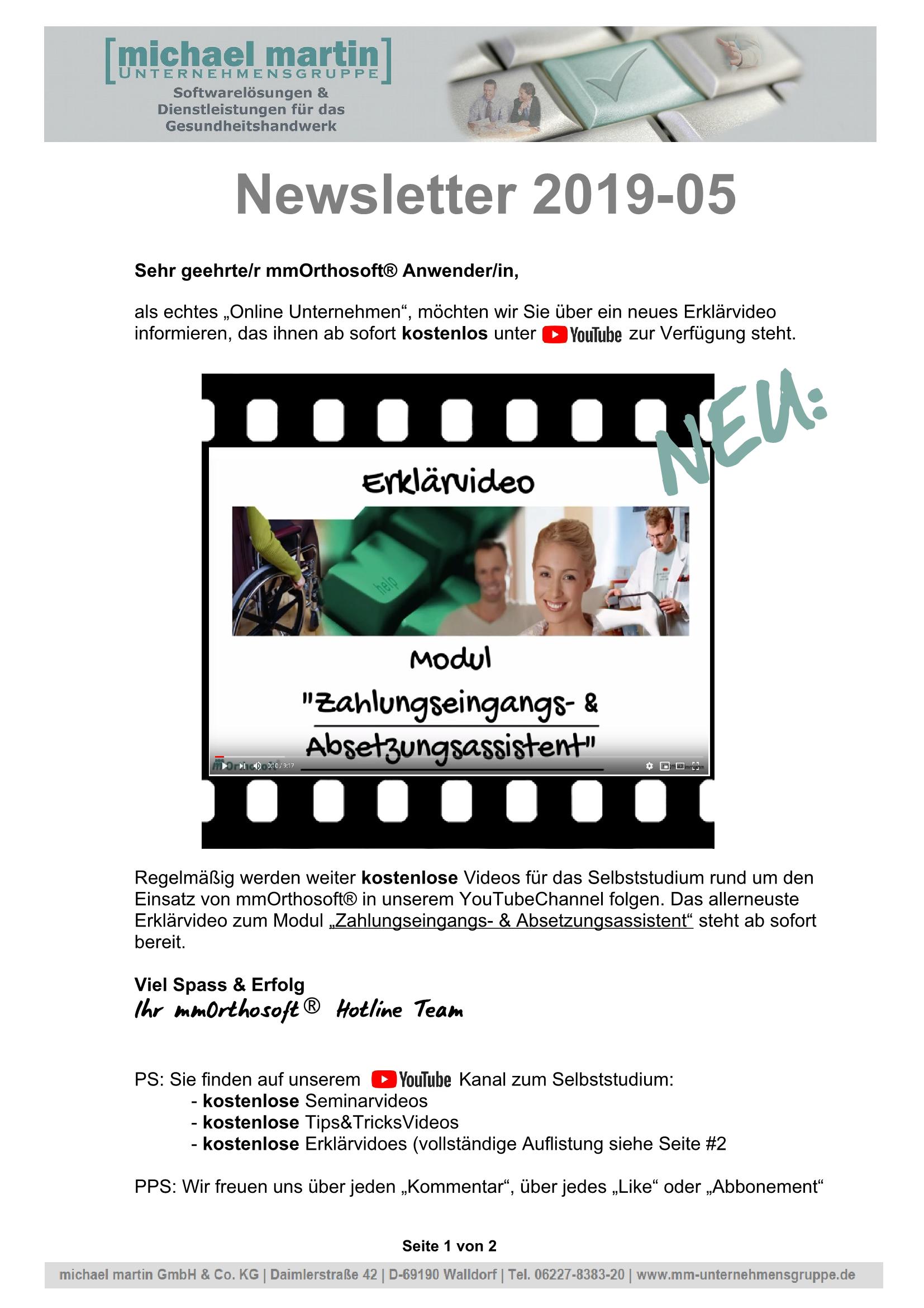 15.07.2019 NEWSLETTER "Neues Erklärvideo Online! Zahlungsassistent"