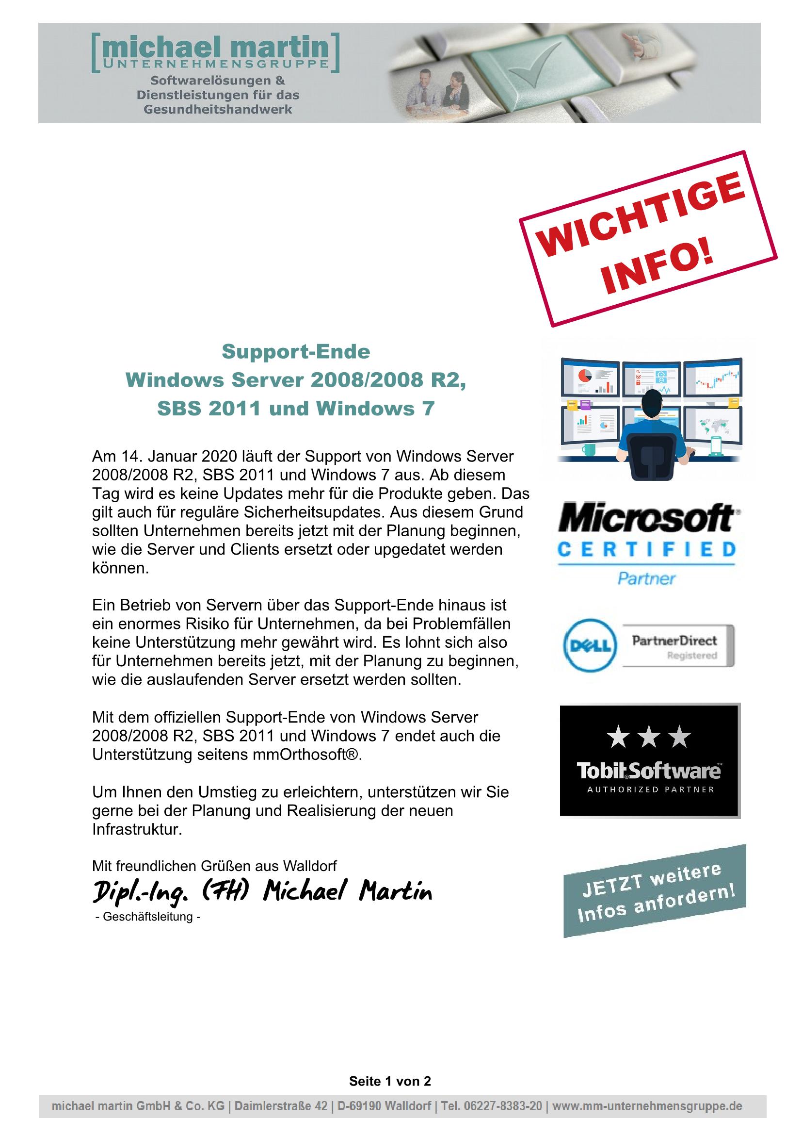 17.07.2019 NEWSLETTER "Server 2008/2008R2, SBS 2011 und Windows 7 Support Ende"