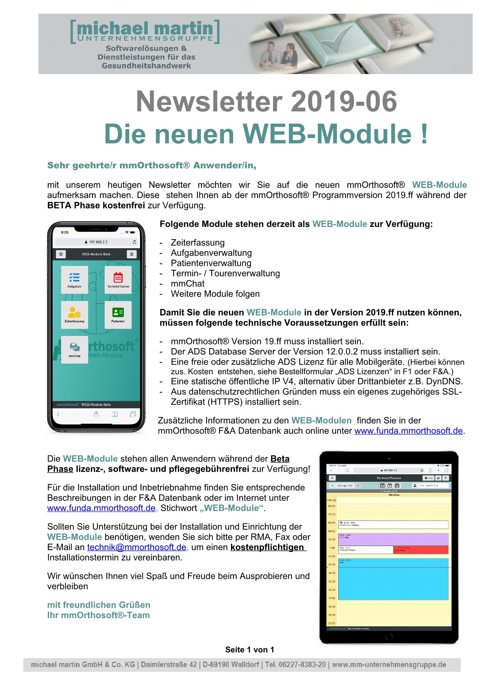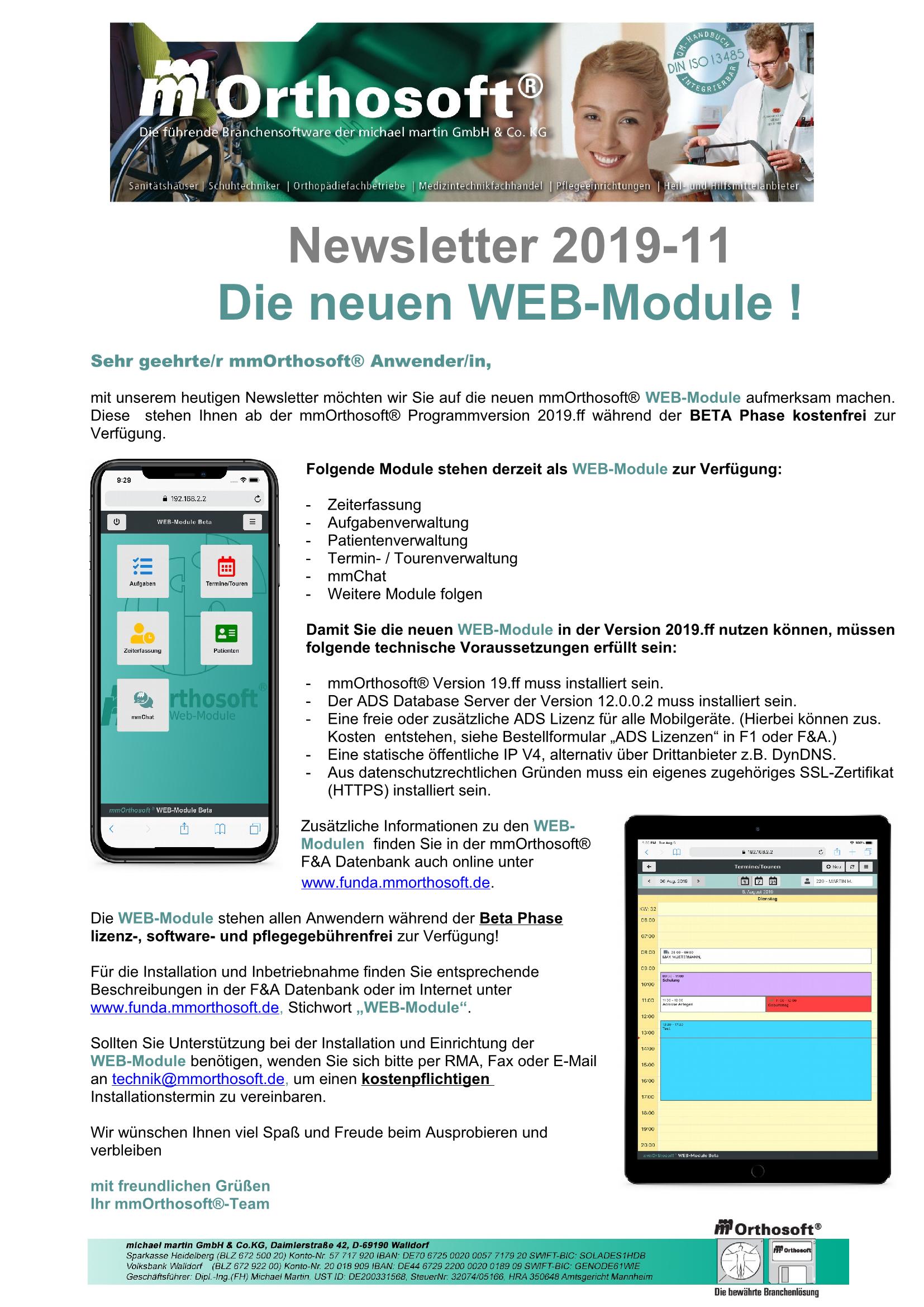 31.10.2019 NEWSLETTER "mmO 19.2 & WEB-Module"
