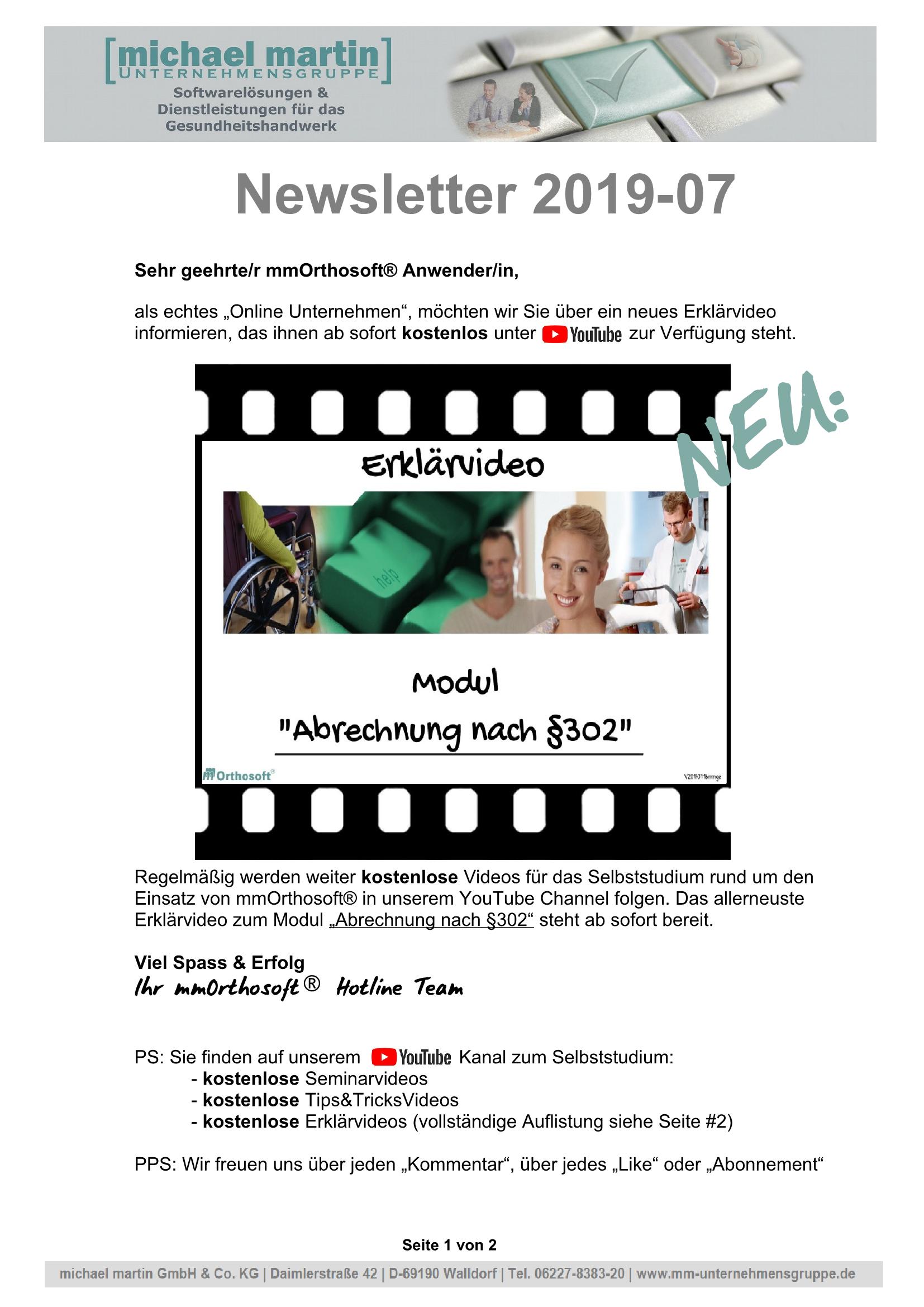 16.08.2019 NEWSLETTER "Neues Erklärvideo Online! §302"