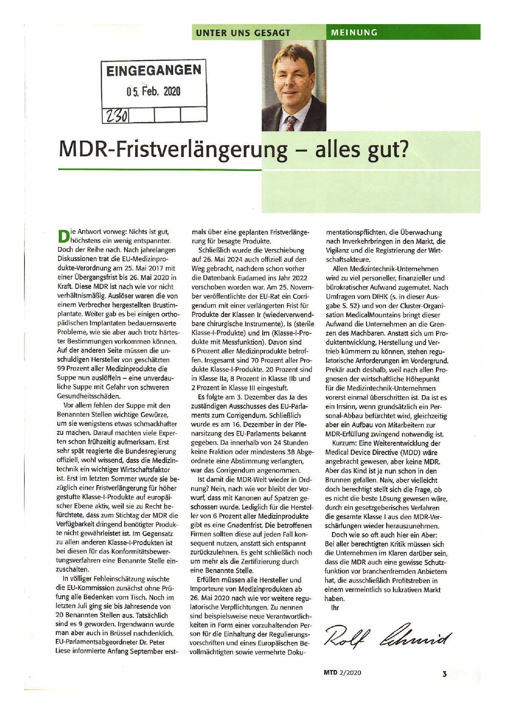 03.02.2020 NEWSLETTER "MDR (Medical Device Regulation)"