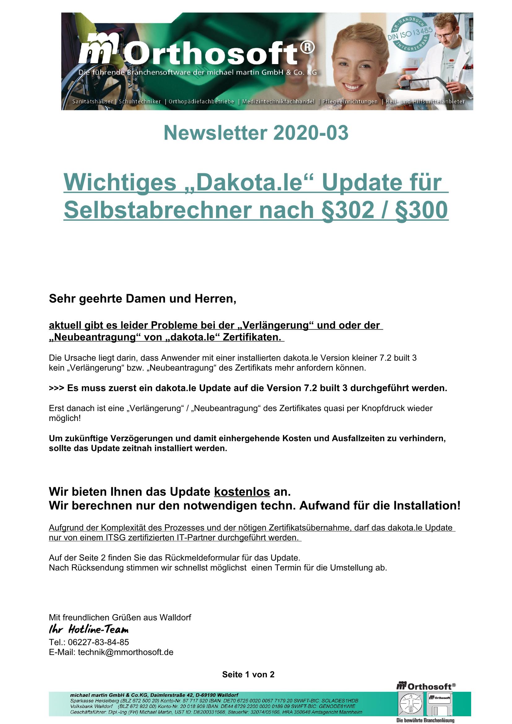 14.02.2020 "Dakota.le Update auf Version 7.2"
