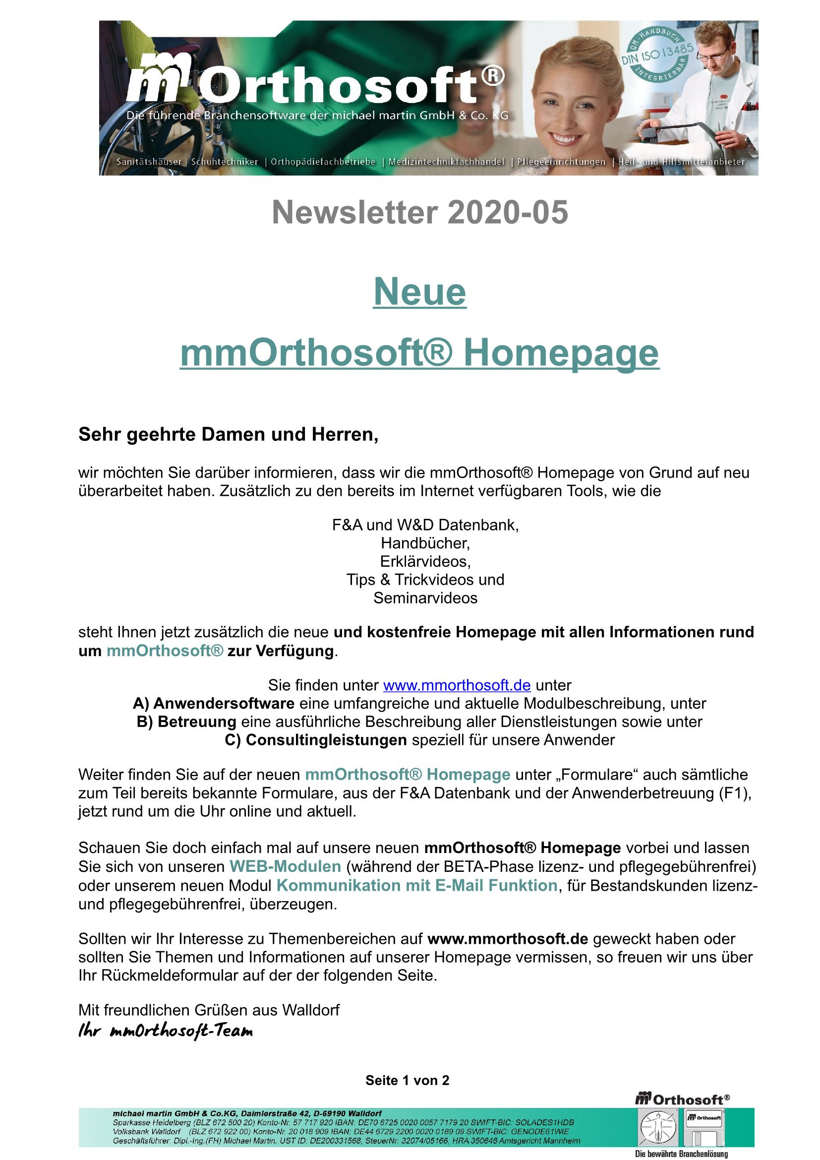 31.03.2020 NEWSLETTER "Neue Homepage"