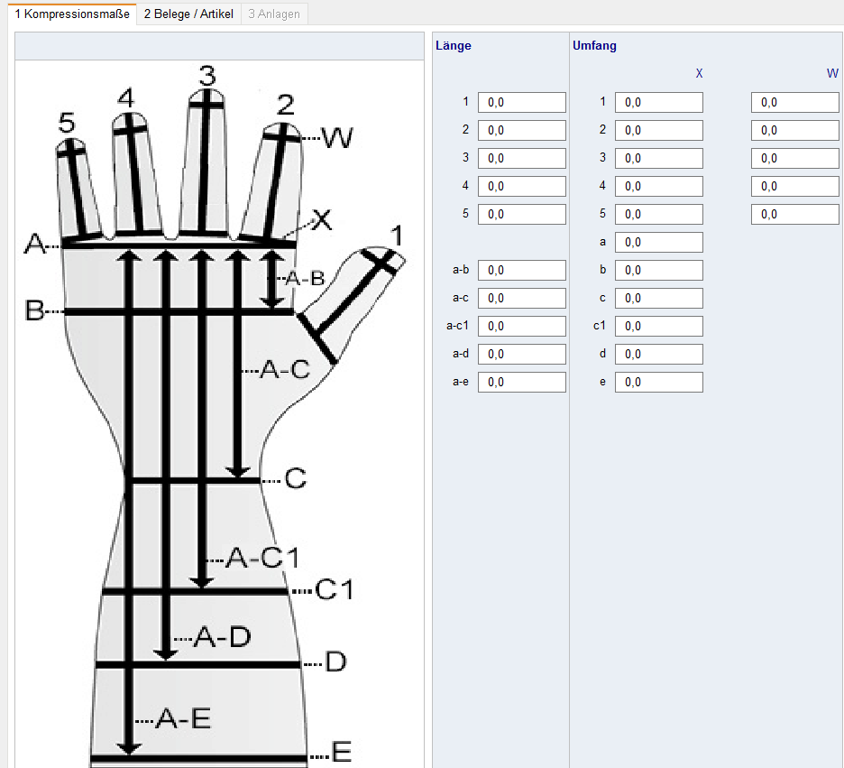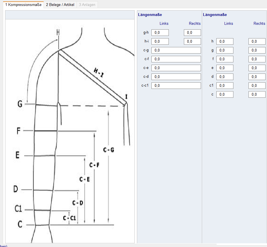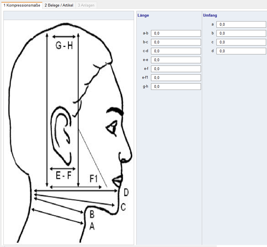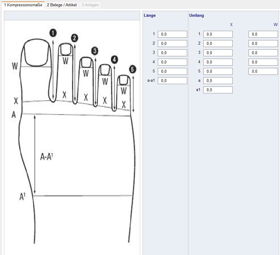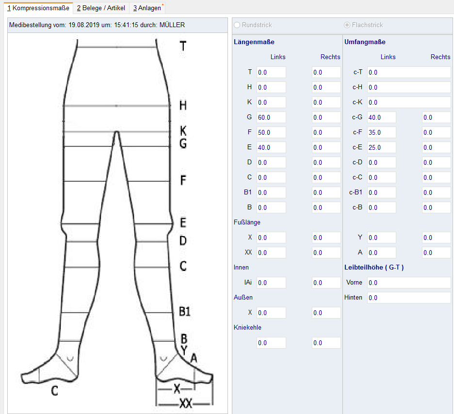 Erfassung der Kompressionsdaten laut Maßblatt !