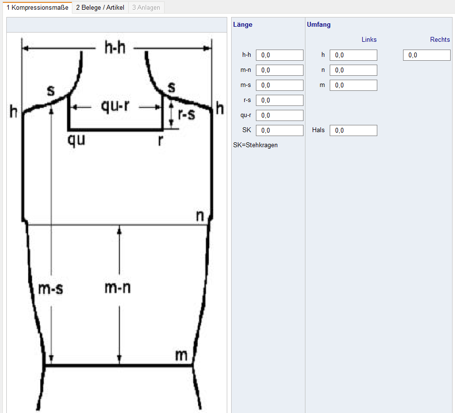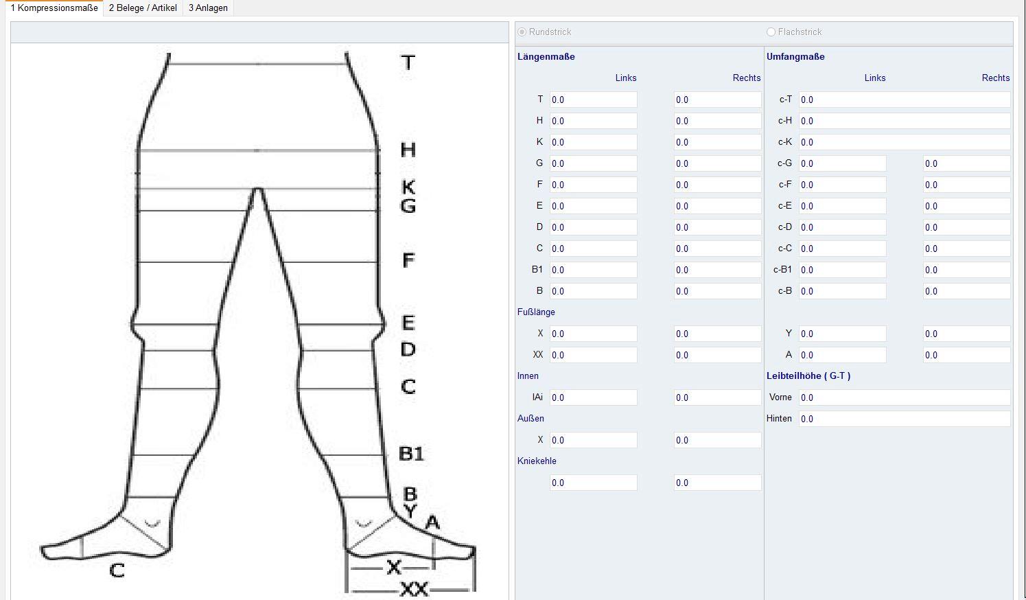 Mit dem Programmodul Kompressionsmaße verwalten Sie alle Kompressionsmaße direkt im Programm: