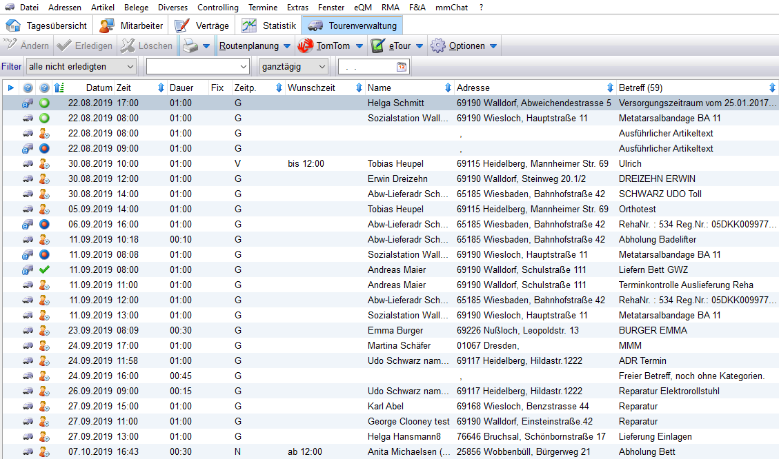 Das mmOrthosoft® Zusatzmodul: Tourenplaner ermöglicht es aus allen Adressen oder Vorgängen heraus Touren als Termine anzulegen und den eigenen Fahrern zuzuordnen. Der mehrstufige Einsatz ermöglicht es, Touren manuell zu erstellen und Tourlisten zu drucken, weiter Touren per Routen Optimierungssoftware optimieren zu lassen oder sogar auf Navigationsgeräte zu übertragen und ist somit für jede Anforderung Ihrer Tourenplanung geeignet.